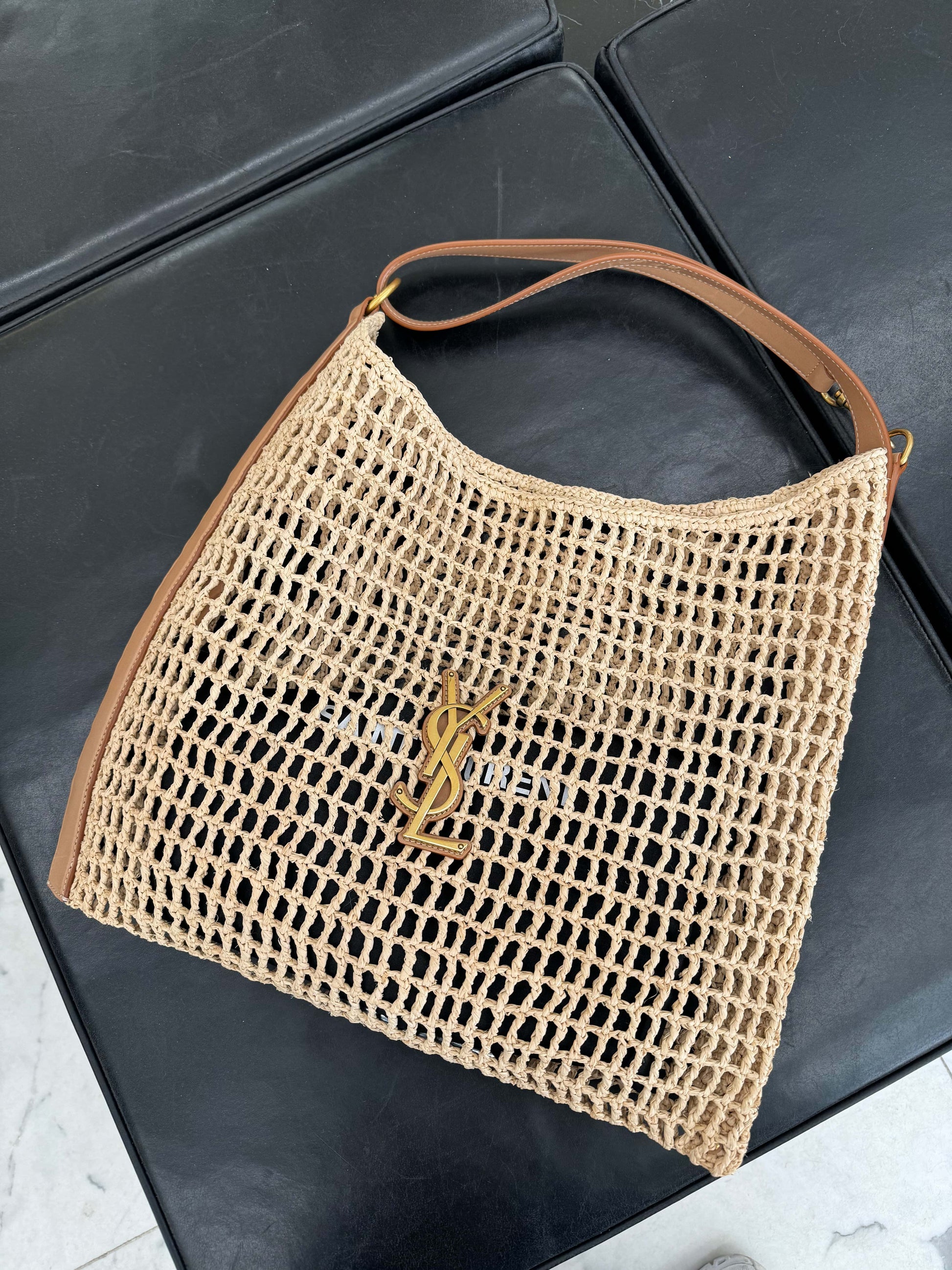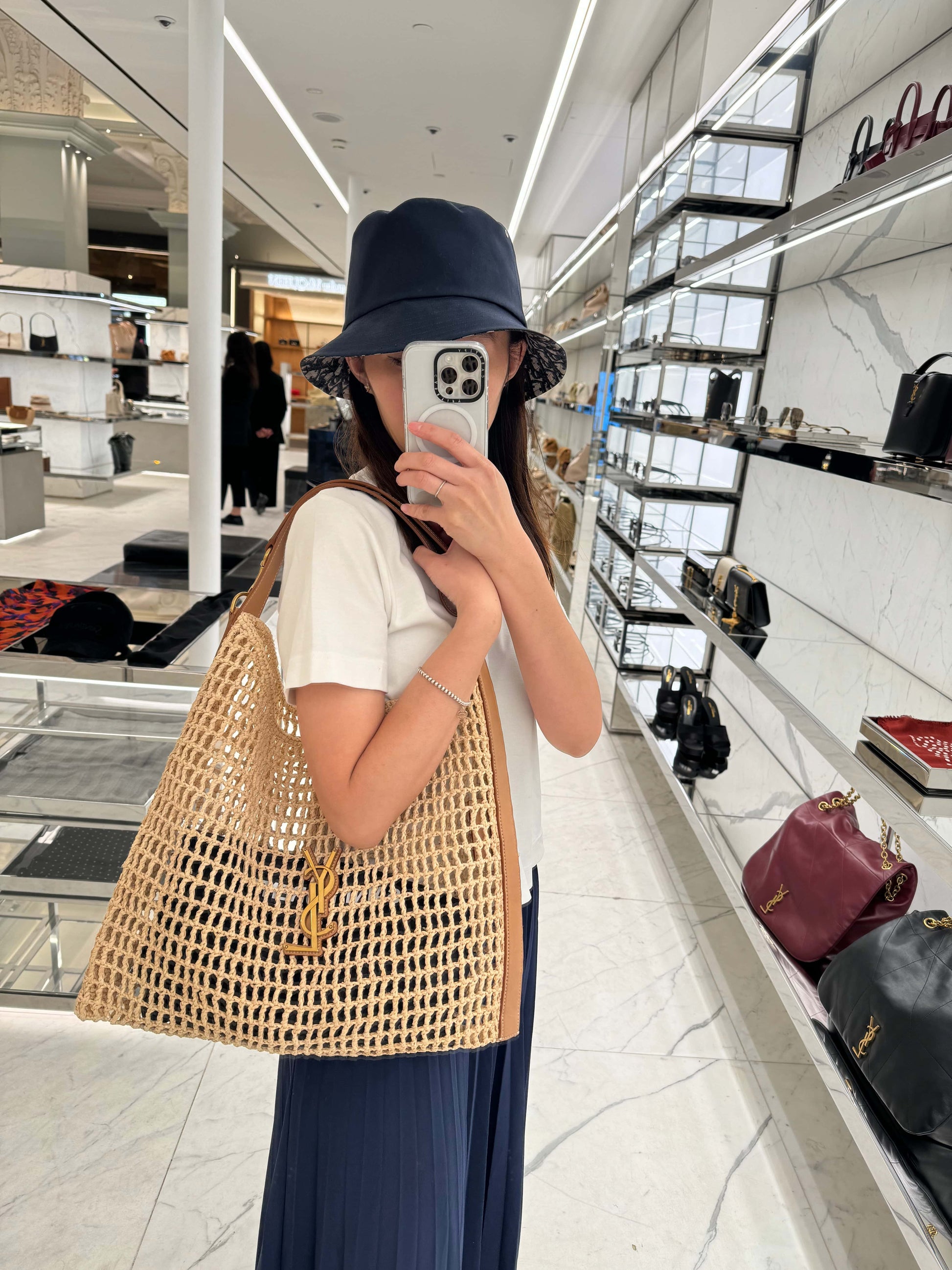 【サンローラン】パリ カサンドラ ラフィア×レザー ショルダーバッグ ベージュ