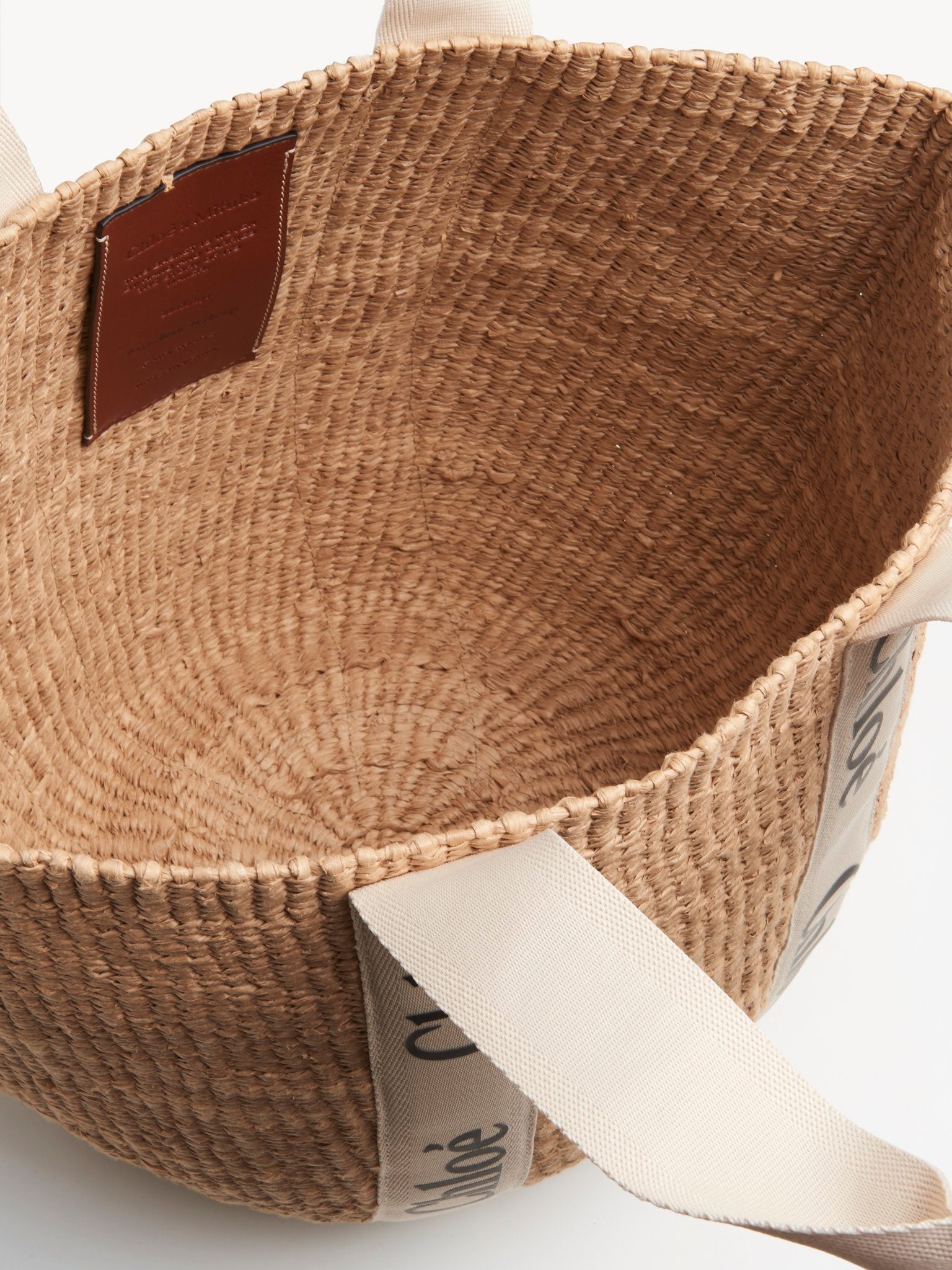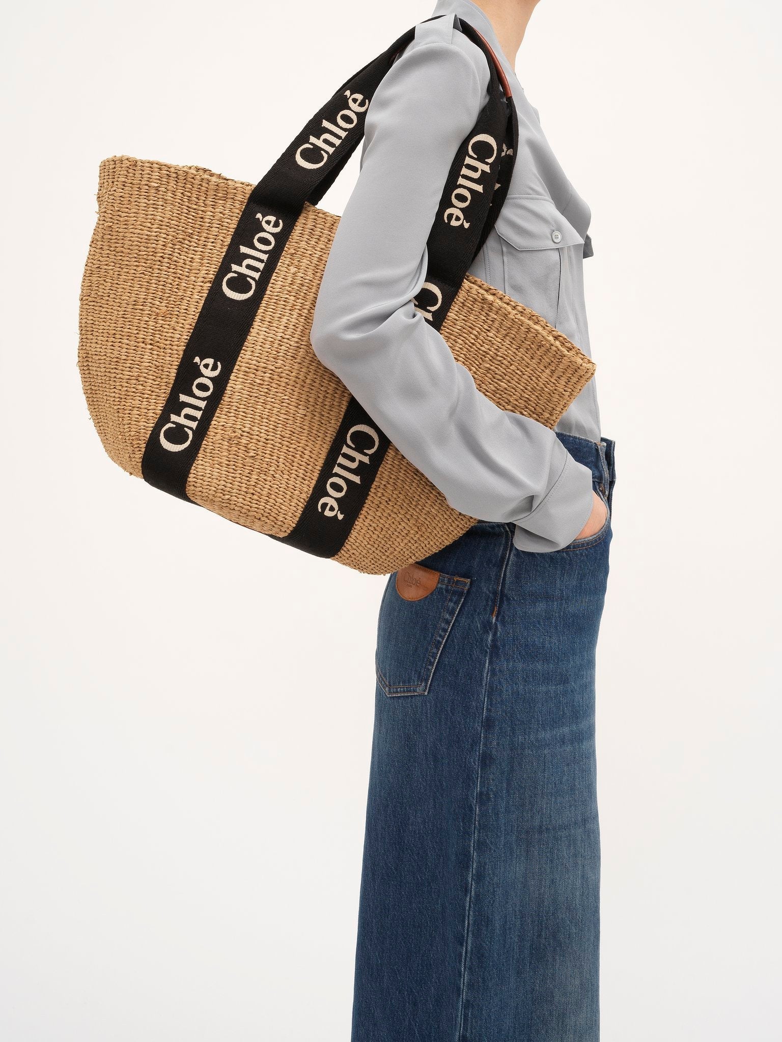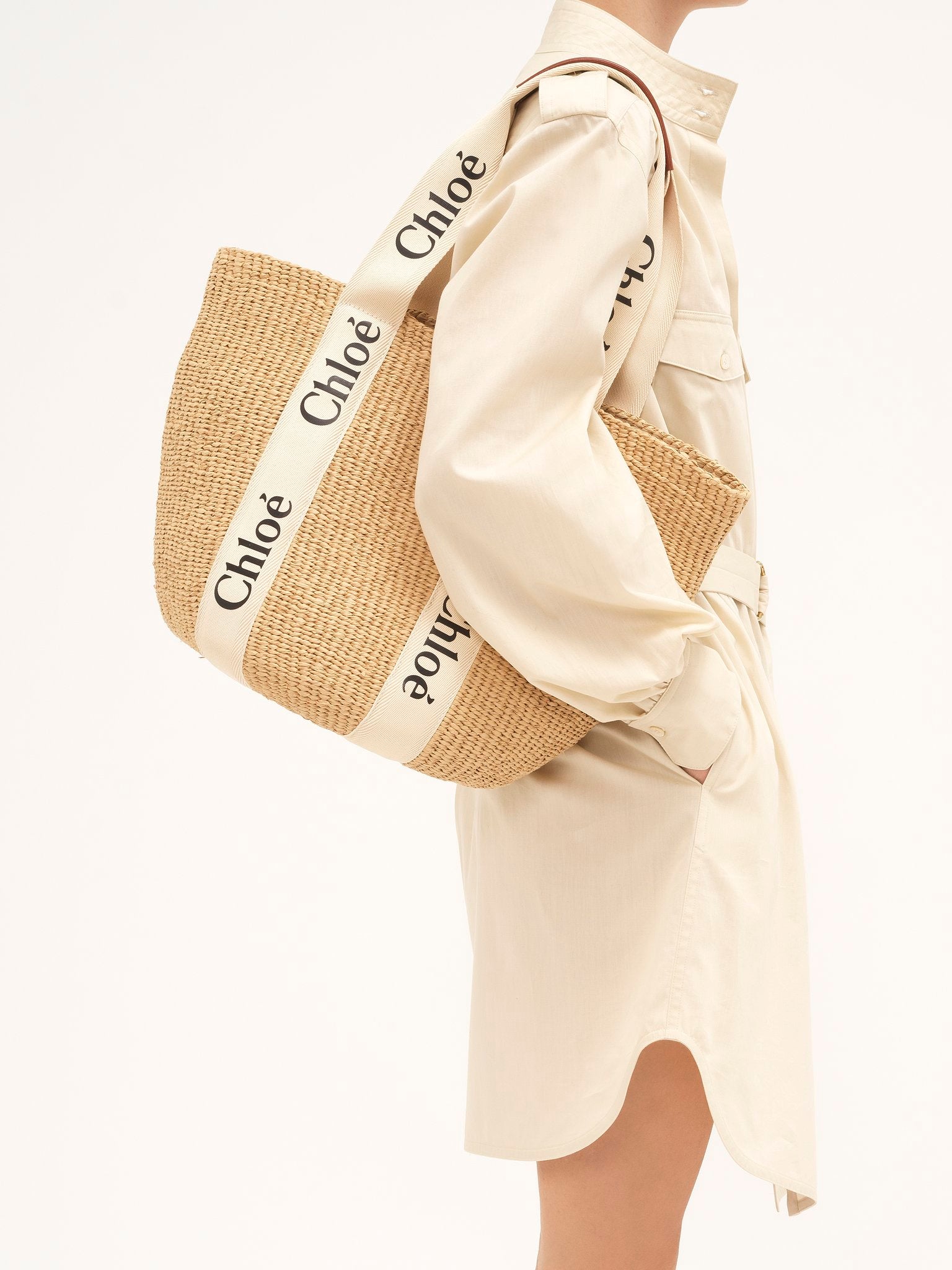 タイムレスなバスケットシェイプがエフォートレスな夏のムードを演出する“Woody”ラージバスケット。ケニアの独立した女性職人が一部材料をアップサイクルして手で編み上げました。Chloeロゴを刺繍したウェビングが天然繊維にあしらわれ、グラフィカルなコントラストとシグネチャーなタッチを添えています。バスケットバッグの底に耐久性を持たせるために、クロエの文字が型押しされたレザーパッチで保護されています。“Woody”ラインは、メゾンのアイコニックなミュールと合わせたシグネチャーなChloeのロゴが特徴です。モダンでミニマルなシルエットを、ナノからラージまでのサイズで表現しています。