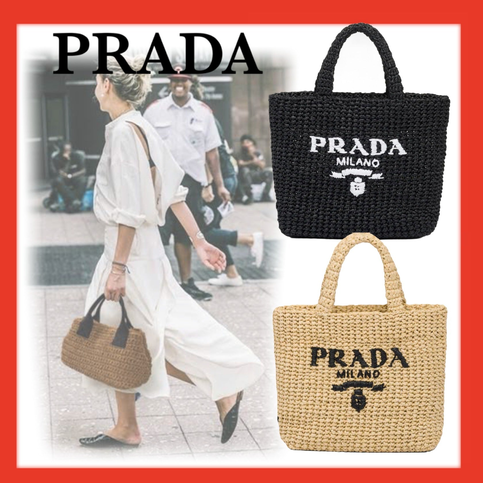 【プラダ】サマー素材/スモール ラフィアトートバッグ ロゴ 刺繍 カゴ-選べる2色