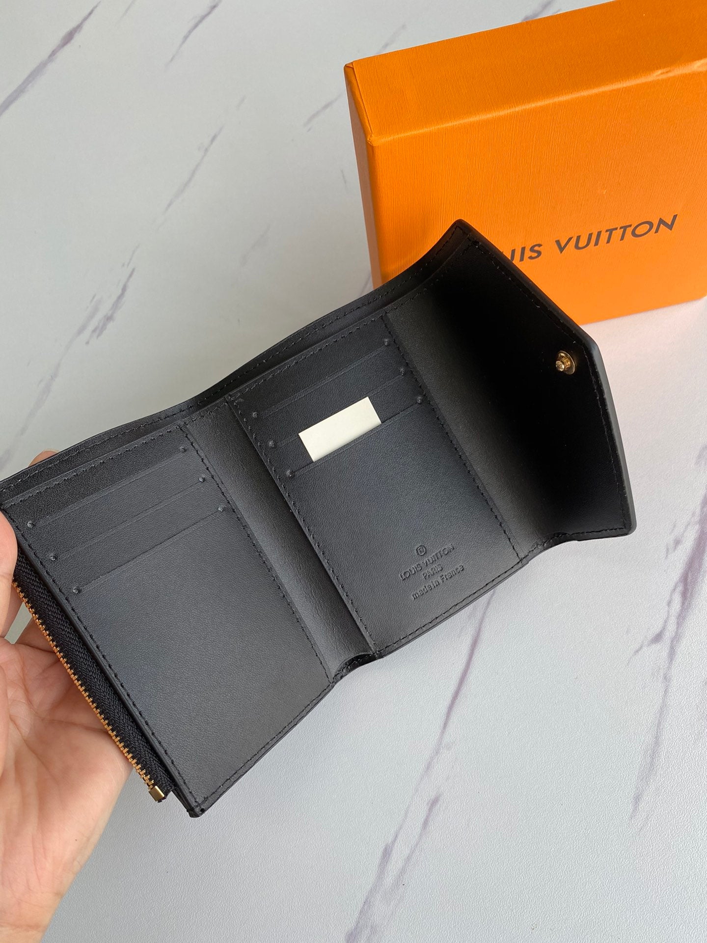 【W007】ルイ* ヴィトン エンボス加工の三つ折り財布